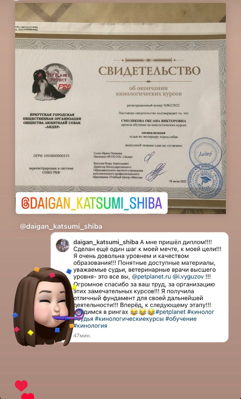 По окончанию курса возможно зарегистрировать питомник в РКФ/FCI и самостоятельно вести племенную работу
